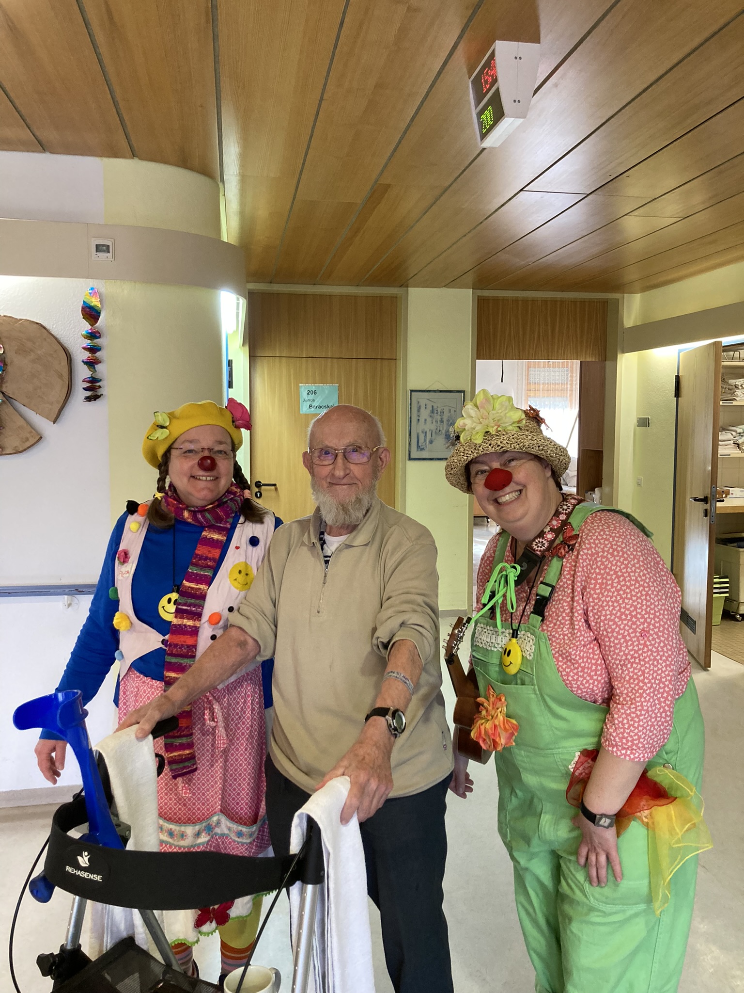 Herr H. ist ein ruhiger Herr, der sich oft zurückzieht. Er ist kaum im Kontakt mit anderen Bewohnern, normalerweise auch nicht mit uns Clowns. Doch heute spricht Rositta ihn an: