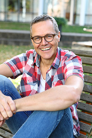 …ist nebenbei noch technischer Mitarbeiter in einer diakonischen Einrichtung. Sternzeichen Fisch (und das ist ihm total egal). Er ist verheiratet, hat zwei Kinder, radelt lieber Berge hinauf als hinunter, spielt (Senioren)-Basketball, trägt Schuhe der Größe 45 und hat einen Body-Mass-Index von 23 (Tendenz steigend).