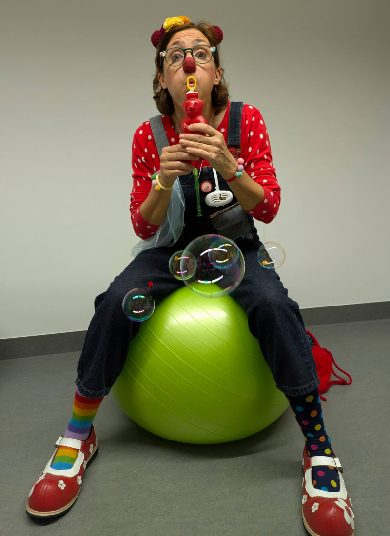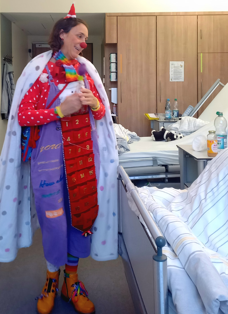 Doch alles, was unsere Clowns im Einsatz erleben, fühlen und spüren dürfen, bestätigt die Ergebnisse der Forschung. Lachen tut einfach gut! So verändert sich das Klinikzimmer bei einer Clowns Visite plötzlich zum Zirkuszelt, zur Großbaustelle, zur Safari mit wilden Tieren oder es wird spontan „Deutschland sucht den Superstar“ performt! Alles spontan, aus dem Bauch und dem Gefühl für den Moment heraus improvisiert. Wenn es die Situation zulässt werden auch Angehörige oder das Pflegepersonal ins Spiel integriert. Doch eines ist wichtig und ganz klar: Keinem wird ein Spiel aufgezwungen. Niemand wird bloßgestellt. Und wenn es nötig ist, können Clowns auch ganz leise und sehr behutsam sein. Dann blubbern „Glücksseifenblasen“ durch die Luft und Lieder werden vorsichtig gesummt.
