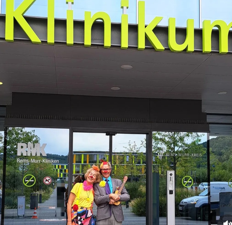 In den Rems-Murr Kliniken in Winnenden spielen unsere Klinik-Clowns jeden Montagnachmittag auf zwei Stationen. Nach der Übergabe mit dem Pflegepersonal wissen wir, auf was wir bei den kleinen Patienten achten müssen (frisch von der OP, körperlich oder geistig beeinträchtigt, psychischer Zustand, familiäre Besonderheiten und, und, und). Danach geht es ans Umziehen und Schminken. Mit kleinen Übungen bereiten wir uns noch gemeinsam auf den Einsatz vor – dann öffnen wir die Tür... die Clowns sind da!