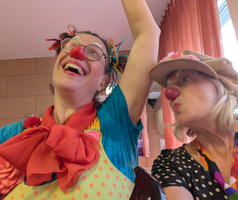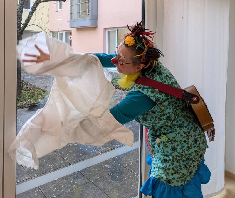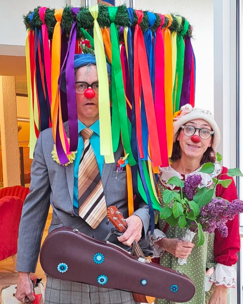 In über zehn Senioreneinrichtungen, quer über den Rems-Murr-Kreis verteilt, spielen unsere Clowns im Team zu zweit. Die gleichbleibende Besetzung der Teams ist in der Beziehungsarbeit extrem wichtig und hilfreich. Neben den Begegnungen mit unseren Bewohnerinnen und Bewohnern ist uns aber auch der Kontakt zu den Pflegekräften in den Einrichtungen wichtig. Unser Spiel soll auch Ihnen, in der oft anstrengenden und belastenden Arbeit, etwas Ablenkung und Leichtigkeit vermitteln.