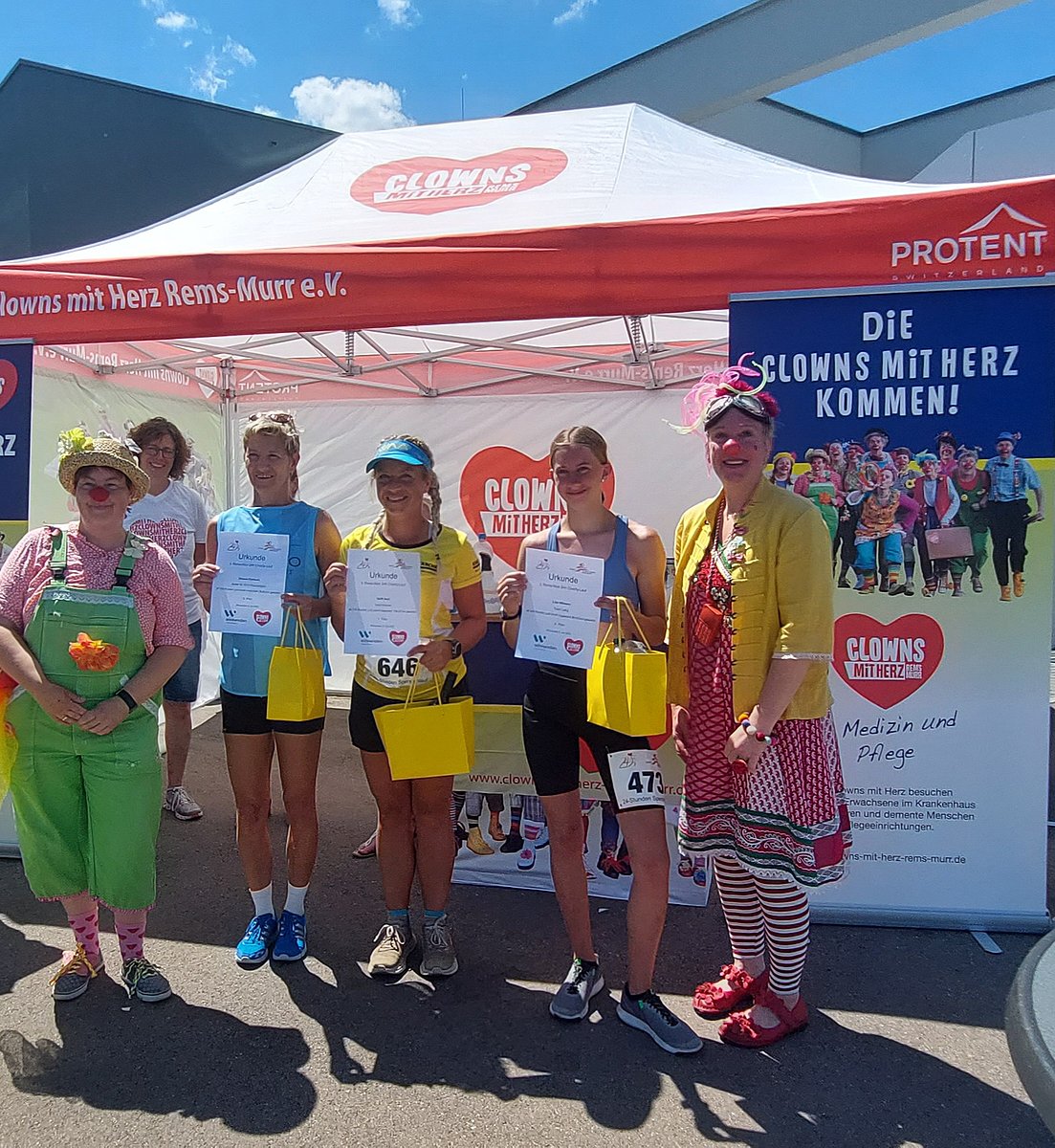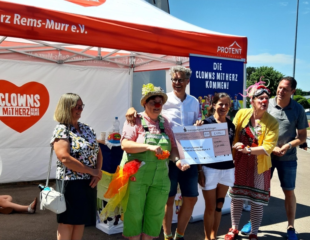 Nach zwei Jahren (Zwangs)-Pause hat er wieder stattgefunden. Unser ultimative 24 Stunden Charity Lauf. Perfekt organisiert durch Die Sportkreisjugend des Rems-Murr Kreises und Bewirtung durch die coole Truppe des SV Hertmannsweiler. Und am Ende durften wir einen Scheck über 6.475,-€ in Empfang nehmen. Der Wahnsinnsbetrag kam einzig und allein durch die vielen erlaufenen Kilometer zustande. Und das ganze bei sommerlich sportlichen Temperaturen (selbst unser Clownsteam hat geschwitzt). Den ersten Platz bei den Herren erlief Achim Wöhrle vom TEAM KÄRCHER mit 137 (!!!) Kilometern. Die Damenwertung gewann Steffi Saul (ebenfalls TEAM KÄRCHER) mit wahnsinnigen 126 Kilometern. Und die Teamwertung sahnte dieses Jahr das Team ADVENTIST RUNNERS mit 1.406 Kilometern ab. Gewinner waren jedoch alle die für uns angetreten sind. Wir sagen DANKESCHÖN und freuen uns schon auf 2023 (Dann auch mit einer Kinderwertung)!