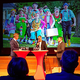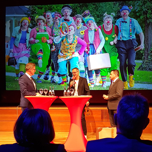 Wir durften am 27. November bei der Jubiläumsfeier dabei sein und konnten uns, beim lockeren Interview von Michael Antwerpes, vorstellen. Schließlich hat sich in den letzten vier Jahren einiges getan. Neue Clowns wurden ausgebildet und neue Einrichtungen werden besucht. Zudem konnten wir Danke sagen. Danke für die wertvolle Unterstützung bei der Vereinsgründung im Jahre 2014.
