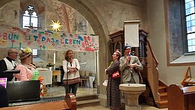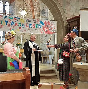 Zwar störten Luna-Luftig, Kleementine und Brokkoli den Gottesdienstablauf, Pfarrer Joachim Bauer bekam als Entschuldigung dafür jedoch ein kleines Geschenk.