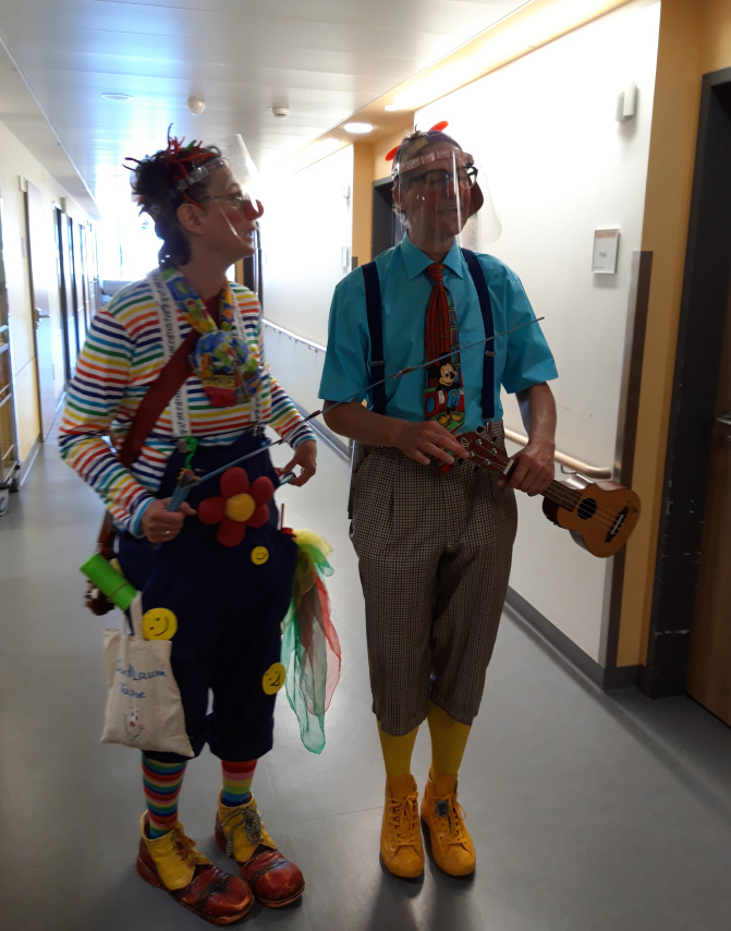 In Abstimmung und unter Berücksichtigung der hygienischen Vorgaben zuerst mit Maske, dann auch mit speziellem Visier. Zwar halten wir immer noch Abstand und können die Zimmer derzeit nicht betreten, die ersten Kontakte zeigten uns jedoch was wir (und die Kids) vermisst haben…. Eine Mutter meinte wir wären „Süstemrelewand“ (oder so ähnlich)!