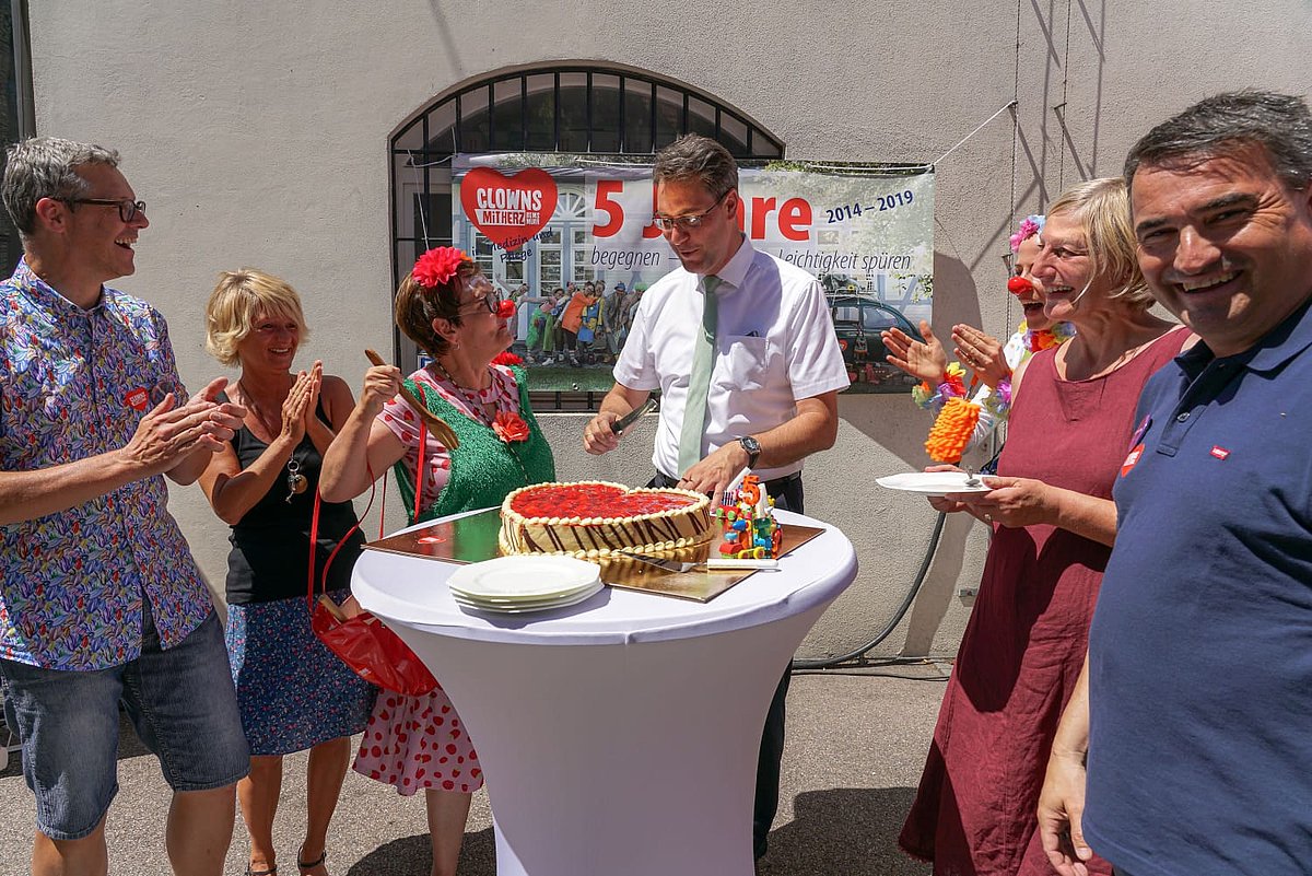 Dr. Richard Sigel (unser Landrat) hat die Geburtstagstorte professionell angeschnitten und unseren Gästen persönlich serviert. Ein super Service!