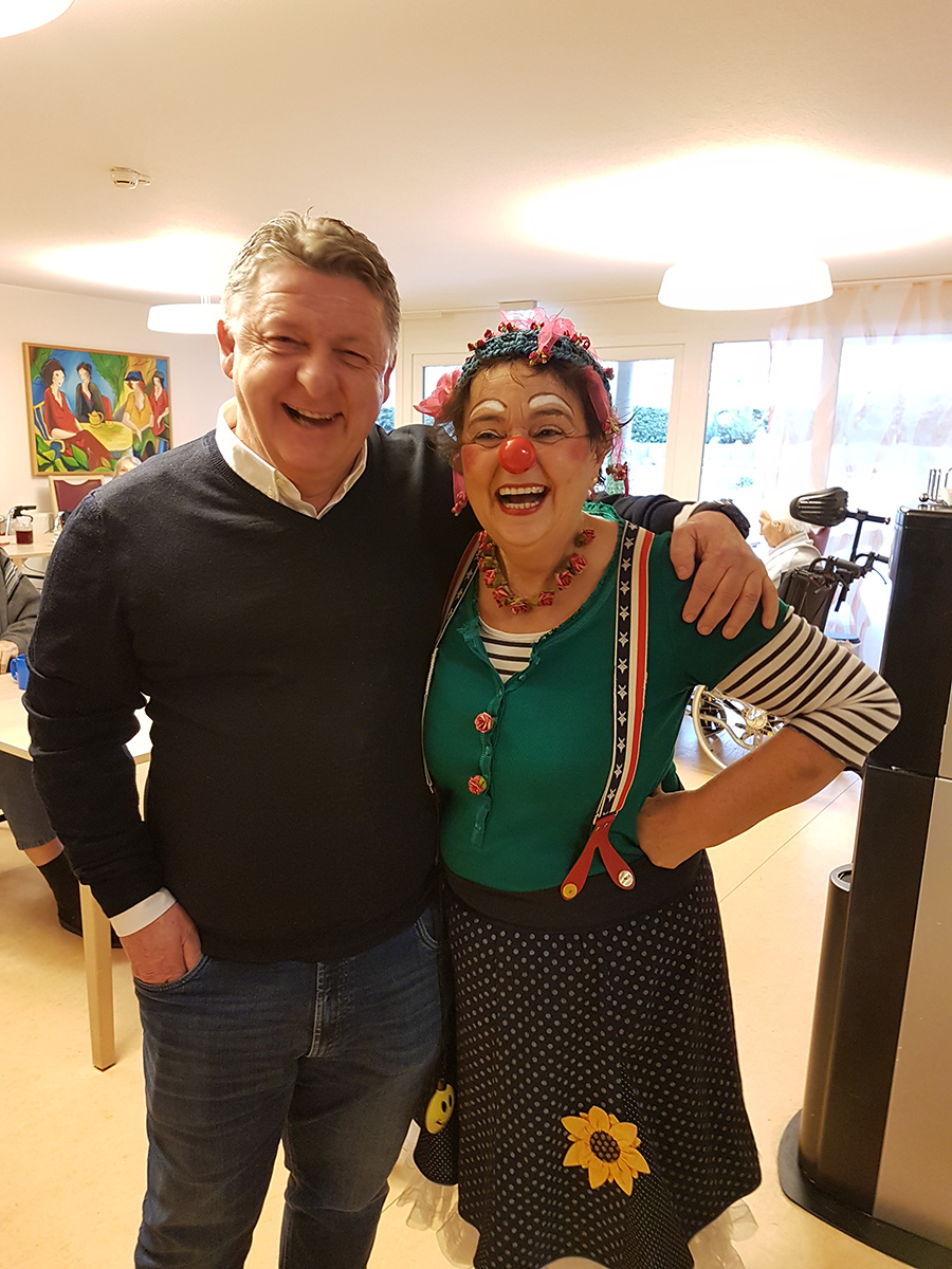 (Pflegedienstleitung) bedankten sich bei Ihnen im Rahmen einer Clownsvisite.