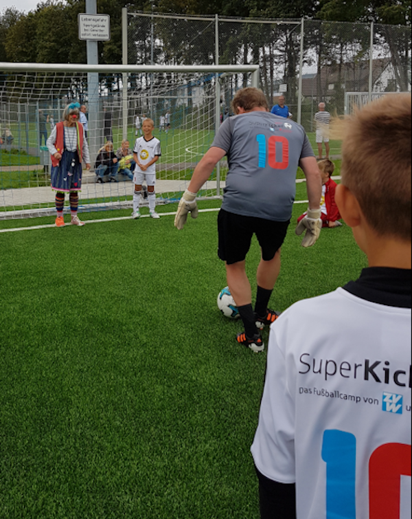 Waiblingen dieses Jahr fast 100 junge Superkicker zum Trainingscamp in Winterbach. Beim Jubiläum gab es zum Abschluss der Trainingswoche eine lustiges Abschlussspiel mit Eltern und Angehörigen.