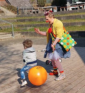 Anwesenheit etwas Ablenkung zu schaffen. Spielen, singen, Sport, Seifenblasen oder auch nur mal